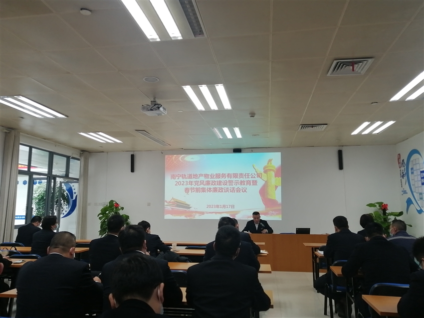 為深入學(xué)習(xí)貫徹黨的二十大及二十屆中央紀(jì)委二次全會(huì)會(huì)議精神,推進(jìn)公司全面從嚴(yán)治黨和黨風(fēng)廉政建設(shè)工作,增強(qiáng)全體黨員干部的廉潔自律意識(shí),營(yíng)造風(fēng)清氣正的廉潔過(guò)節(jié)氛圍,2023年1月17日南寧軌道地產(chǎn)物業(yè)公司黨支部在東站樞紐培訓(xùn)室召開(kāi)2023年黨風(fēng)廉政建設(shè)警示教育暨春節(jié)前集體廉潔談話,公司全體黨員、入黨積極分子、中層管理人員共47人參加了此次會(huì)議。