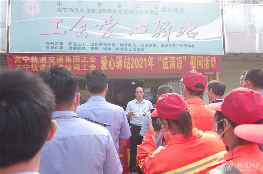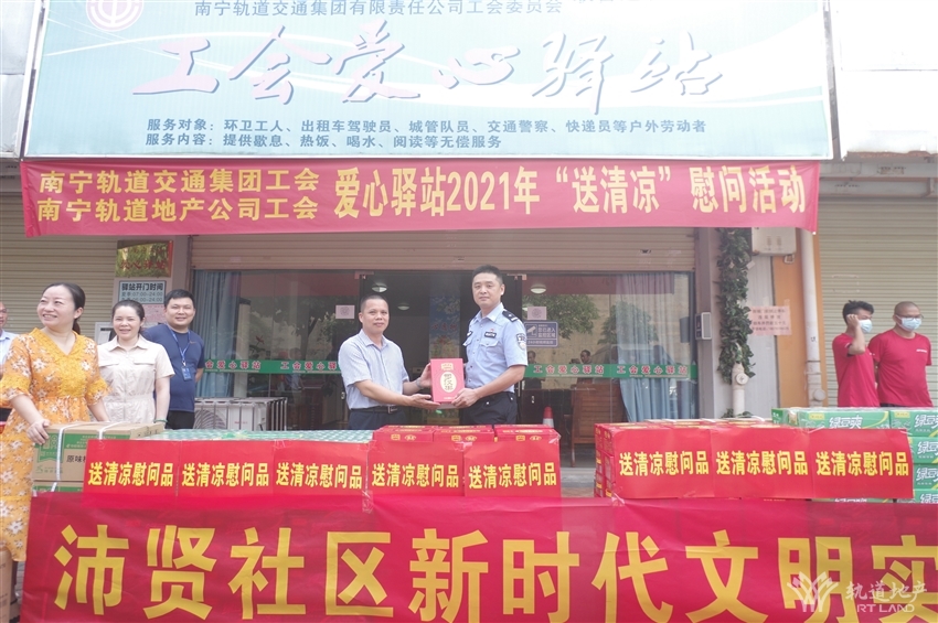 近日,持續(xù)高溫天氣給堅守一線的戶外工作者帶來嚴峻“烤”驗,為積極推進“我為群眾辦實事”實踐活動走深走實,910日上午,由南寧軌道交通集團工會、南寧軌道地產(chǎn)集團工會牽頭,攜同南寧軌道城市發(fā)展公司工會、軌道地產(chǎn)物業(yè)公司工會及那洪街道黨工委、沛賢社區(qū)在金凱路沛友巷工會愛心驛站組織開展“送清涼”慰問活動,南寧市總工會技協(xié)辦副主任阮杰,經(jīng)開區(qū)工會工委副主任易蘭新,交警十大隊教導員駱明等同志出席活動。
