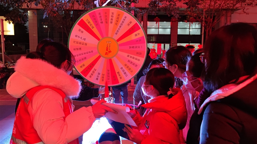 紅火的燈籠掛在枝頭,濃濃的年味已在廣場(chǎng)上蔓延,燈籠上懸掛有節(jié)日燈謎以及黨的二十大知識(shí)、民族團(tuán)結(jié)知識(shí)、廉潔知識(shí)、垃圾分類知識(shí)、安全生產(chǎn)知識(shí)的題目。大家三五成群看謎面、猜謎語,沉浸在猜謎解謎的樂趣中。這種寓教于樂的方式,充分調(diào)動(dòng)了大家學(xué)習(xí)的興趣,大大提高了黨員教育的實(shí)際成效。