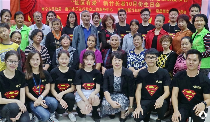 "祝你生日快樂!祝你生日快樂!" 祝福的歌聲和掌聲不斷響起來。2017 年 11 月 1 日下午,在青秀區(qū)新竹社區(qū),十幾個老人聚在社區(qū)的一間活動室里,參加 "社區(qū)有愛"新竹社區(qū)長者 10 月份生日會,一起慶祝生日。本次關(guān)愛社區(qū)老人公益活動由南寧市樂益行社會工作服務(wù)中心、新竹社區(qū)居委會和逸居公司團支部、中房會等聯(lián)合舉辦。