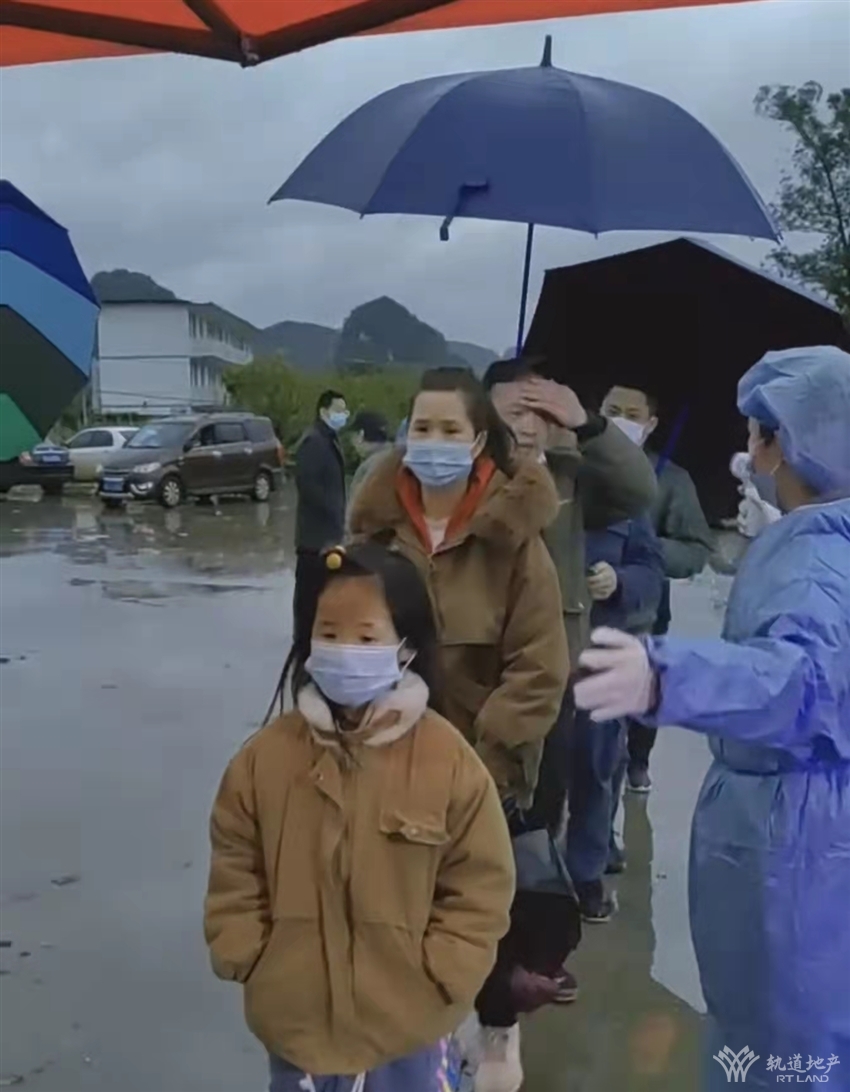 冒雨維持核酸檢測隊伍秩序