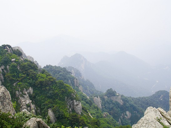 我們的行程很快,在下纜車后迅速到達(dá)南天門開始向玉皇頂進(jìn)發(fā),然后終于來到了向往已久的泰山摩崖石刻處。作為泰山的標(biāo)記之一,站在《紀(jì)泰山銘》的刻石下面,仰望這部唐玄宗的"封"山之作,頓時(shí)覺得自己十分渺小,泰山獨(dú)有的莊嚴(yán)神圣和巍峨磅礴撲面而來,讓我完全拜服于泰山的獨(dú)特魅力之中。隨后我們登上了泰山之巔--玉皇頂。在玉皇頂回身俯視天地,終于在課本之外親身體會(huì)感受到杜甫"會(huì)當(dāng)凌絕頂,一覽眾山小"這句千古絕唱的韻妙之處,也真切的領(lǐng)會(huì)到"登泰山而小天下"的無與倫比的雄偉霸氣所在。